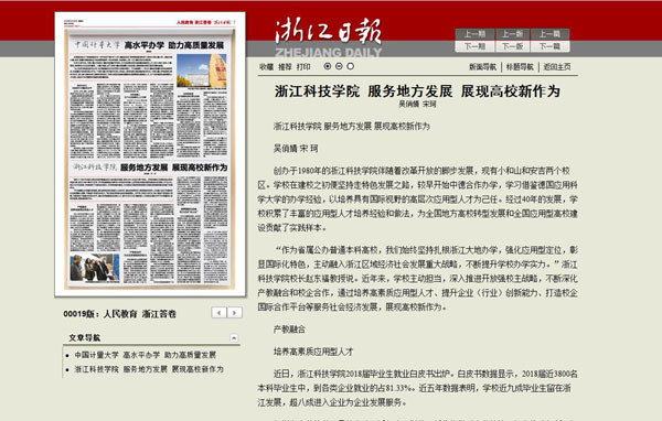 浙江日报:浙江科技学院:服务地方发展 展现高校新作为