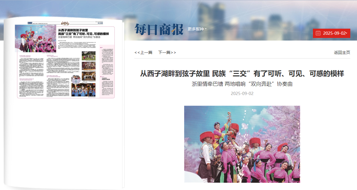 山海相隔,心手相牵。浙川两地对口支援的故事,是两地铸牢中华民族共同体意识的生动探索。“我们希望以艺术为桥梁,为雪域高原与江南水乡搭建起交流互通的通道,让两地人民跨越山海、同唱一首团结之歌。”何玮表示,未来,两地将持续深化互动、拓展合作维度,推动彼此协作迈入更深的新阶段,让民族团结之花,在这两片土地上共同绽放!