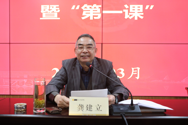 3月10日,学校新提任中层干部培训班开班,校党委书记龚建立作开班动员暨“第一课”。校党委副书记符宁平主持。