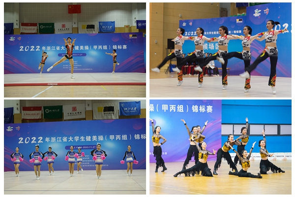 11月24日-27日,2022 年浙江省大学生健美操(甲丙组)锦标赛在我校举行,来自全省38所高校的43支队伍、739名师生参加角逐。