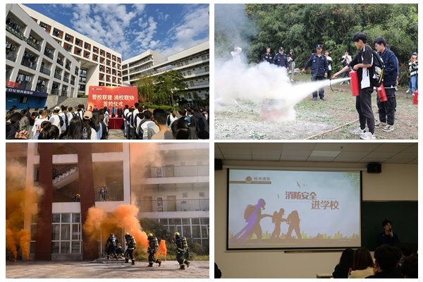 11月9日,“警校联建 消校联动”党建共建签约仪式举行,保卫处、安吉校区管委会分别与属地公安消防签署“警校联建 消校联动”协议书。下一步,学校与属地公安消防将充分发挥各自优势,共同推进党建与业务效能,进一步增强我校与属地公安的联防联动能力,为深入推进平安校园建设奠定基础。