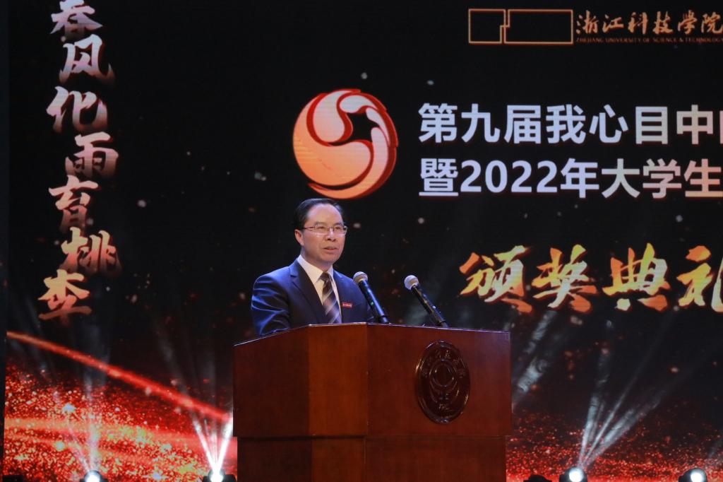 4月12日晚,第九届“我心目中的好老师”暨2022年“大学生年度人物”颁奖典礼举行,校党委书记赵东福、校长陈建孟等校党政班子成员出席颁奖典礼。往届“我心目中的好老师”代表、校友代表为获奖者颁奖。