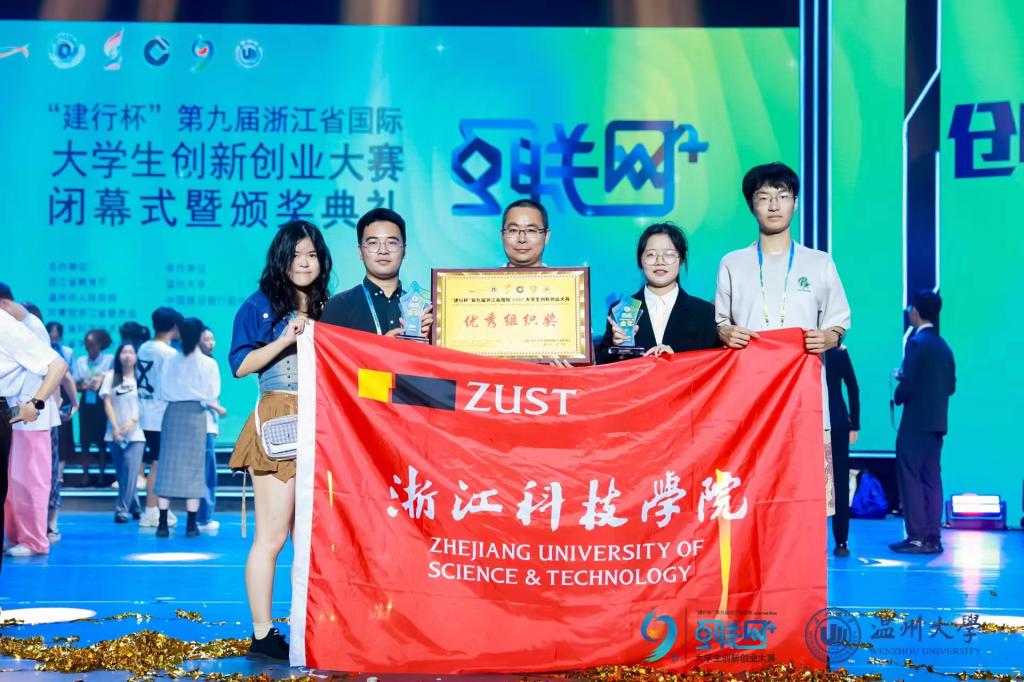 日前,第九届浙江省国际“互联网+”大学生创新创业大赛闭幕式暨颁奖典礼举行。我校参赛项目获金奖2项、银奖11项、铜奖8项,学校获高校集体奖、优秀组织奖。