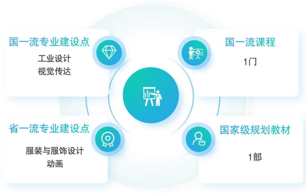 近5年来,学院加强内涵建设,各项事业发展成绩斐然。教学方面,以一流专业建设为龙头,突出能力导向,持续打造核心专业课程与特色优势课程,新增一系列教学成果:工业设计和视觉传达获国一流专业建设点,服装与服饰设计和动画获省一流专业建设点。拥有国一流课程一门,国家级规划教材1部,以及省级教材3部,省级课程14门,省级教学团队2个。获全国大学生广告艺术大赛(2023)国家一等奖1项,德国红点设计奖Red Dot Design Award(2023)国家级一等奖1项(概念设计奖)。研究生在首届美丽中国创新设计大赛中获一等奖一项,二等奖两项,三等奖三项,学院被评为“优秀组织单位”。