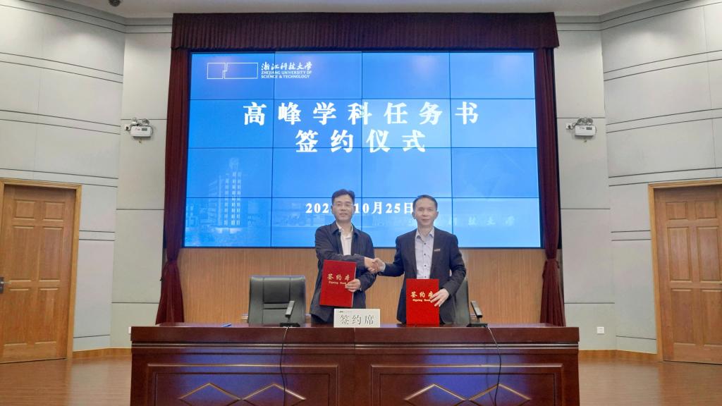 在学校“学科筑峰”工程高峰学科群第一批遴选中,经各一级学科申报,校学术委员会投票遴选,党委会审定,聚焦绿色低碳、智能科技和生命健康,学校开展绿色过程、智能技术两大高峰学科群建设,环境科学与工程、智能科学与技术为高峰学科。签约仪式中,陈建孟与高峰学科负责人代表、校党委副书记单胜道签订《学科筑峰建设项目任务书》。赵东福、陈建孟分别与高峰学科群学科所在学院签订任务书。