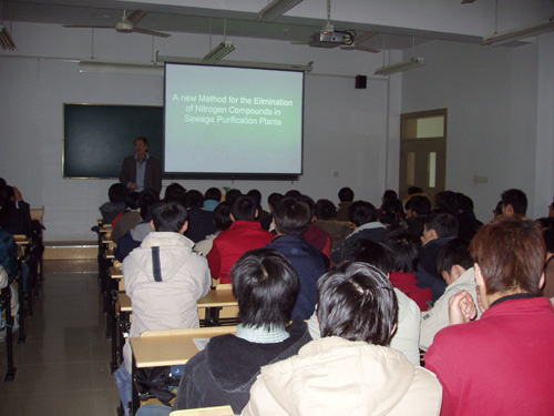 2月28日德国埃姆登应用技术大学教授Eike Siefert为生化系学生作题为“废水脱氮技术”的学术报告。Eike Siefert教授在报告中主要介绍了在德国”废水脱氮技术”的情况,并重点介绍本人及研究课题小组近年来在此方面的研究成果。Eike Siefert教授的学术报告受到同学的欢迎,使与会者更加了解”德国废水脱氮技术”方面的先进方法。