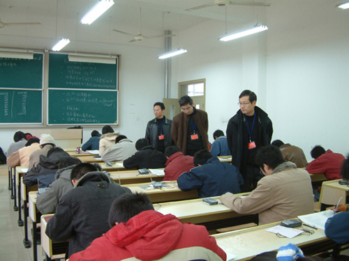 1月13日,本学期期末考试拉开了序幕。当日下午,学院党委书记徐志平、副院长龚建立在教务处长冯军等同志陪同下,巡视检查了小和山校区大学英语期末考试试场。在巡视检查中,徐书记对考风考纪建设提出了一些意见和要求。他强调,要保持和发扬学校在狠抓考风考纪工作中一些好的传统和做法,进一步研究总结考试管理规律,以与时俱进的精神来不断加强考试管理体系建设,形成良好的考风,杜绝作弊现象。据教务处安排,本学期期末考试持续至1月26日结束。