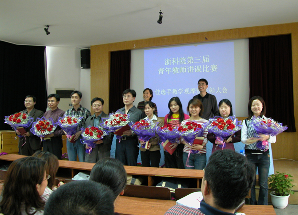 我校青年教师讲课比赛从1999年开始,两年举办一次。本届比赛,在各教学单位预赛和推选的基础上,于2003年11月21日至11月27日进行了决赛。经专家组的认真评议,邓韵声(外语系)、冯巧娥(外语系)、孙小英(生化系)、许梅生(理学系)、张洽(艺术系)、林焕祥(信电系)、袁斌(机电系)、郭峰(社科学)、童伟芳(外语系)、魏英(教信系)十位教师被评为十佳青年教师。同时,外语系和教信系获得优秀组织奖。