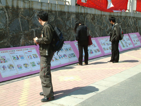 近日在学校小和山校区宾馆楼前举办的“崇尚科学、关爱家庭、珍惜生命、反对邪教”图片展吸引了广大师生员工的目光。图片展分为“国泰民安,岂容邪教捣乱”、“什么是邪教”、“邪教骗人”、“邪教害人”、“邪教组织和邪教活动违法”、“崇尚科学,远离邪教”六个部分,图片展以生动的事实、形象的图画、朴实的语言,全面系统地介绍了邪教的危害,同时也向大家宣传了科学文明的生活方式。