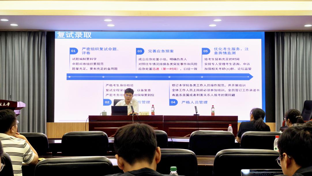 肖宇辉强调了研招工作各环节细节及注意事项,介绍了如何编制招生简章和专业目录、推免生复试录取及研考报名资格审核的工作节点、开展自命题工作的整体流程、复试及调剂工作的注意事项等。